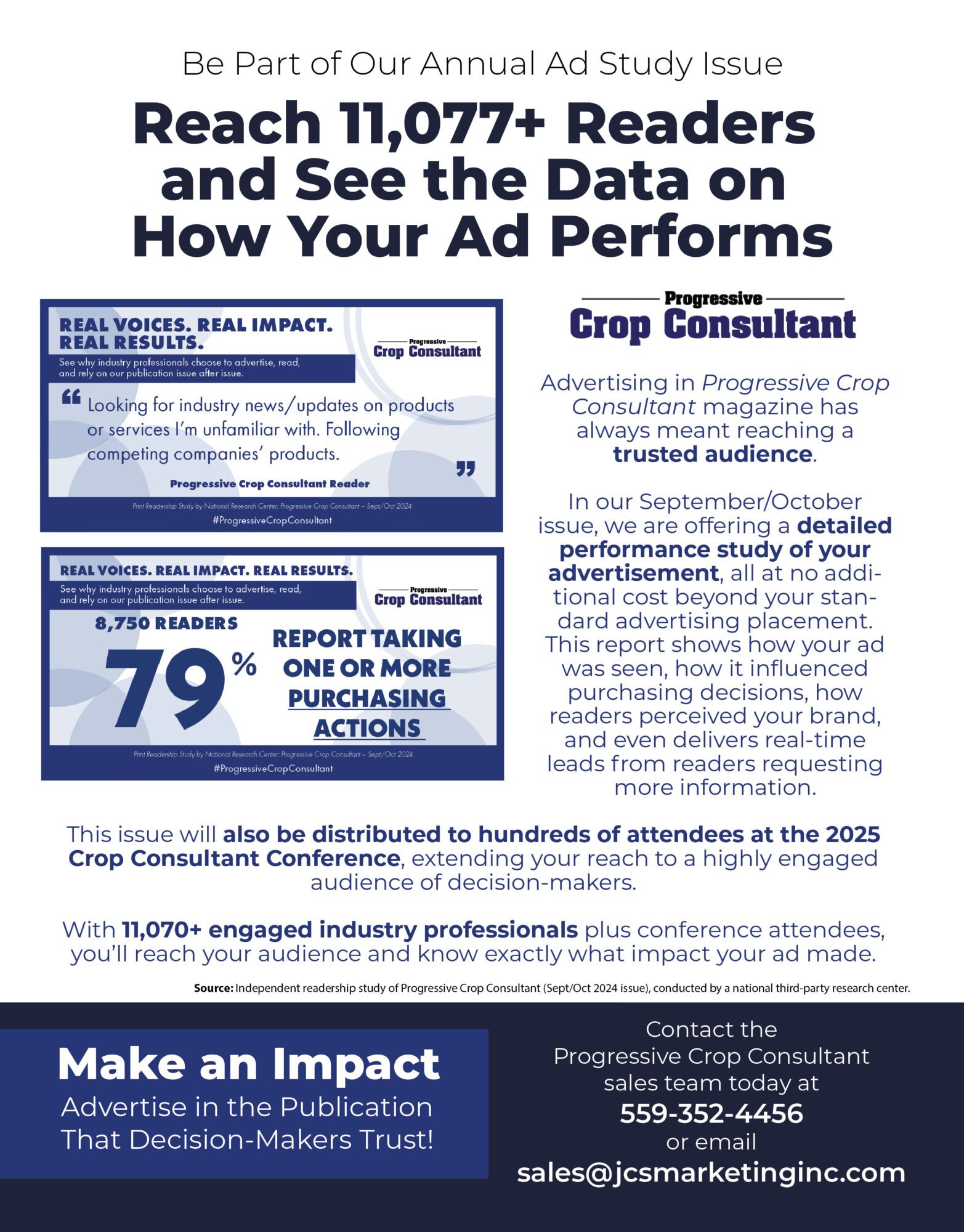Our goal is to produce the highest quality publications that promote note-worthy editorial with information on best practices, new research, essential tools, and exciting innovations for the top specialty crops in California. Progressive Crop Consultant reaches the crop consultants that help growers make key decisions every day.